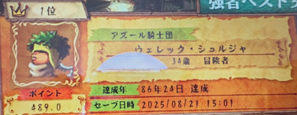 2025/08/24 日記,VB 難易度高くてクリアできなかったヴィーナス&ブレイブスのクロニクルモードを、20年越しくらいでクリアしました!ブラッド団長がいない分、世代交代のハラハラ感と、年表の行間読んで人間関係の想像するのが楽しかったです。クロニクルはリセットしない方が戦死者含めての物語になるとはいえ、そのプレイスタイルは難しくで無理でした…!激強冒険者のウェレックくんが一番印象に残りましたが、序盤に現れて、いろんな人にプロポーズされまくるんだけど独り身を通した神官ちゃんとかもめちゃくちゃ良かったです。アイラブ酒場人材!クロニクル、自分だけの騎士団な感じがよりしてよかったですね。ユニットを育てる楽しみもよくて、ますますヴィーナス&ブレイブス……好きだ…!と改めて思うなどしました。次はストーリーモード2周目をやりたいです。自分が創作をやるときはクロニクラー的なマメさがないので引き続きストーリーモードを擦っていきたいと思います…!
