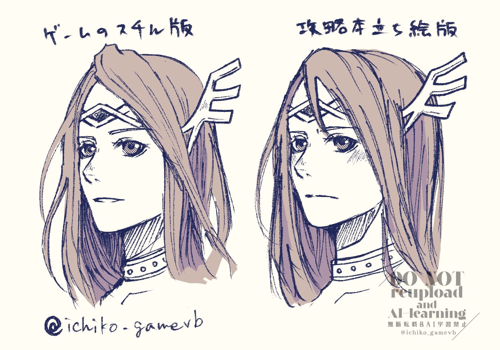 2025/08/24 日記,VB アリア様の前髪、立ち絵とパッケージイラストで前髪の処理の仕方が違うのが気になっていて、私は前髪が少しある方が可愛いと思うので描いているのですが、アリア様っぽい女神感があるのはかっちり固めた髪型だとも思っている…。あまり気にしないまま一冊本を作ってしまったけど、マイアリア様は前髪が少しある形でいこうと思います。(なんの宣言……?)