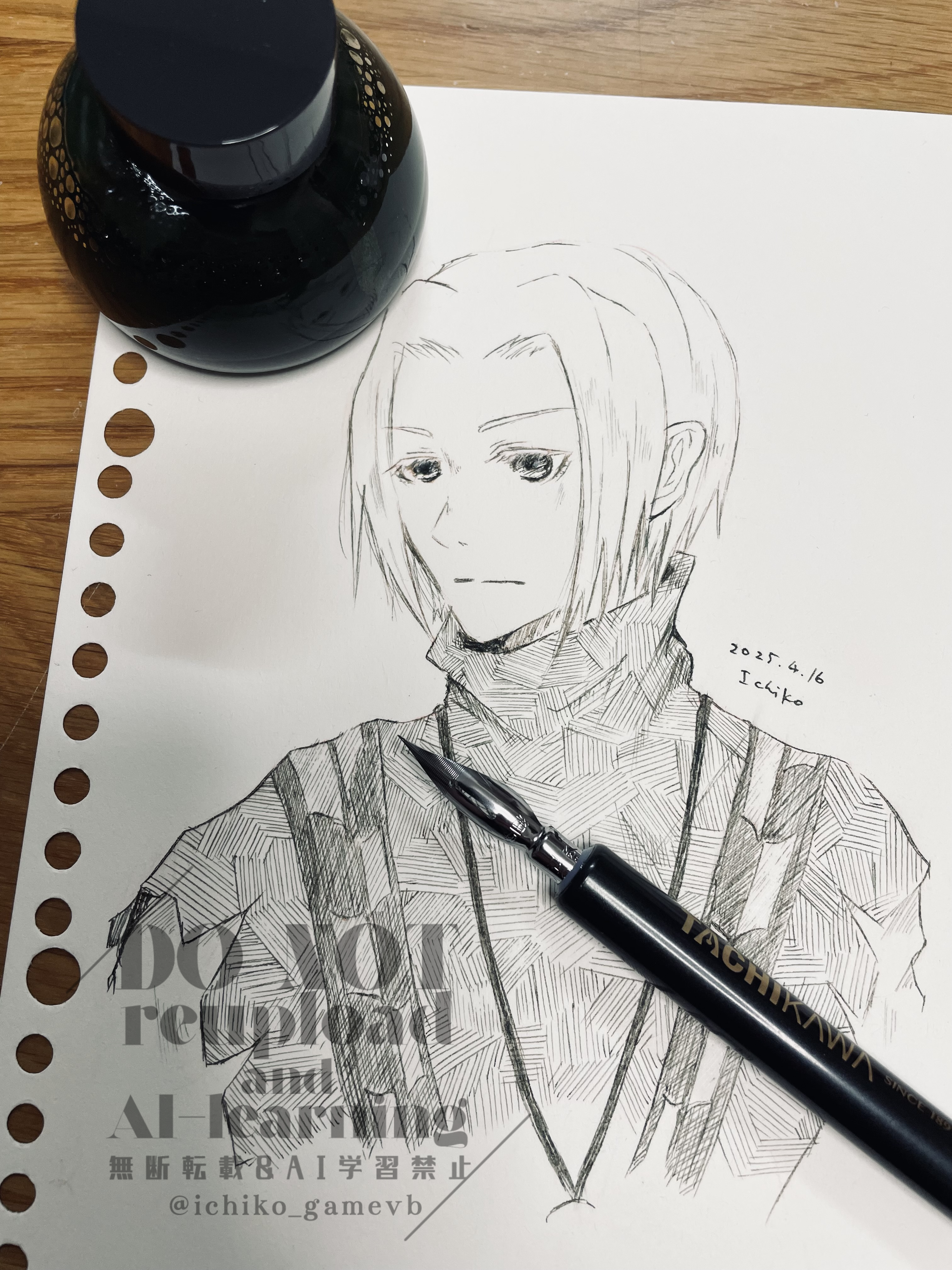 2025/04/16 日記 突如つけペン使いたい欲を満たしたくて描いてみました最近下絵は3Dで調整したりデジタルで描くこと多いので、久々のオールアナログで描いたんですけど、やっぱり楽しい!!お絵描き楽しすぎる…!ニコニコ