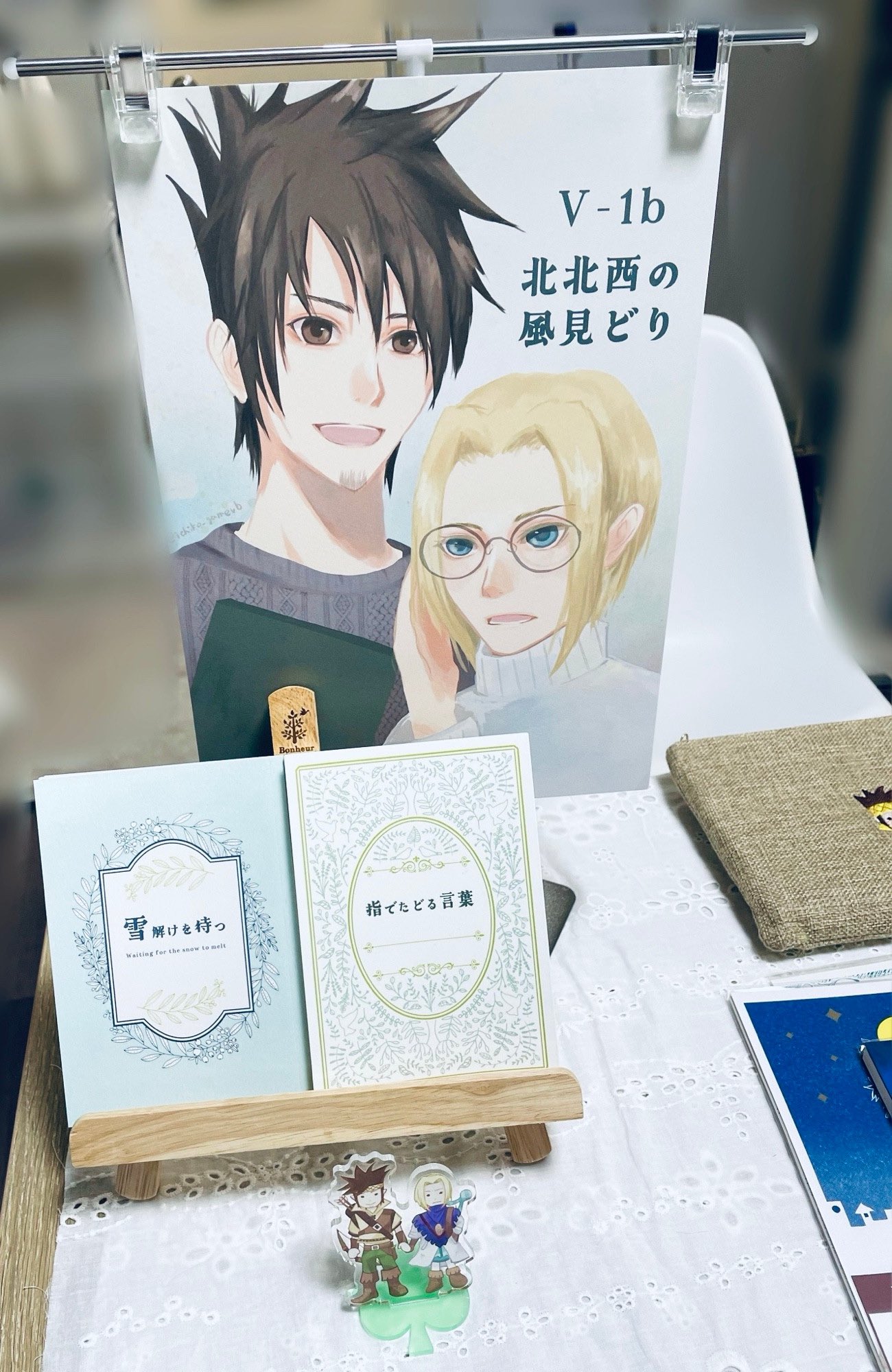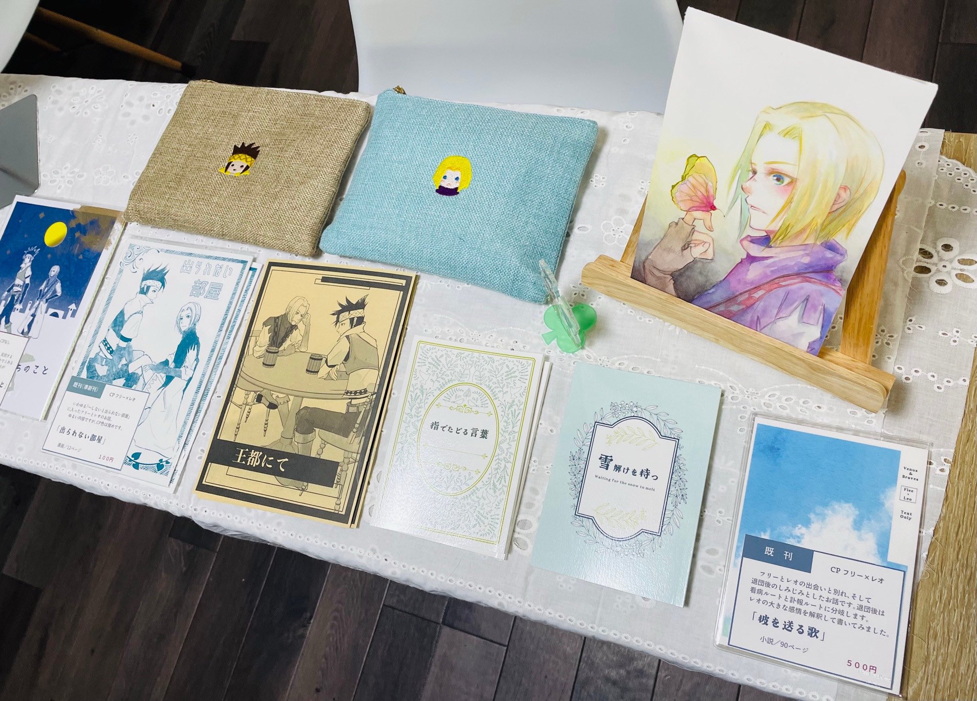 2025/04/20 日記,VB 2025/4/19、各々が作ったフリレオ本を交換する会(in Kyoto)を開催しました。参加は2人だけど、一人2sp取ってるから実質4sp…!フォロワーさんがコピー本5冊作ってらしたので(すごい!)、私も小説本2冊&漫画1冊作って持っていきました。あとこれまで作ったフリーとレオが出てる本も賑やかしに持っていきました。お互いの本の感想交換や、お絵描きタイムなどがありすごい楽しかった…!フォロワーさんのディスプレイもこだわりがあってすごかった。色々お話ししたのですが、 ・V&B同人誌持ち寄り読書会&フリレオに限らず推しカプすごろくを回してプレゼンする会 ・ヴィブレビジネス新書『人は間合いが9割』『市長の仕事術』のカバーがかかっている新書サイズのメモ作りたい ・フリレオがけんかしたり揉め事が起きたときに間に入ってくれる一般職アンソロ(17パターン)作成などという今後を見据えた(?)意見も出てきて、盛り上がってとっても楽しかったです。またフリレオ縛りじゃなくても、またやりたいです!!22年前のゲームでこんなに盛り上がれるのは幸せですね。