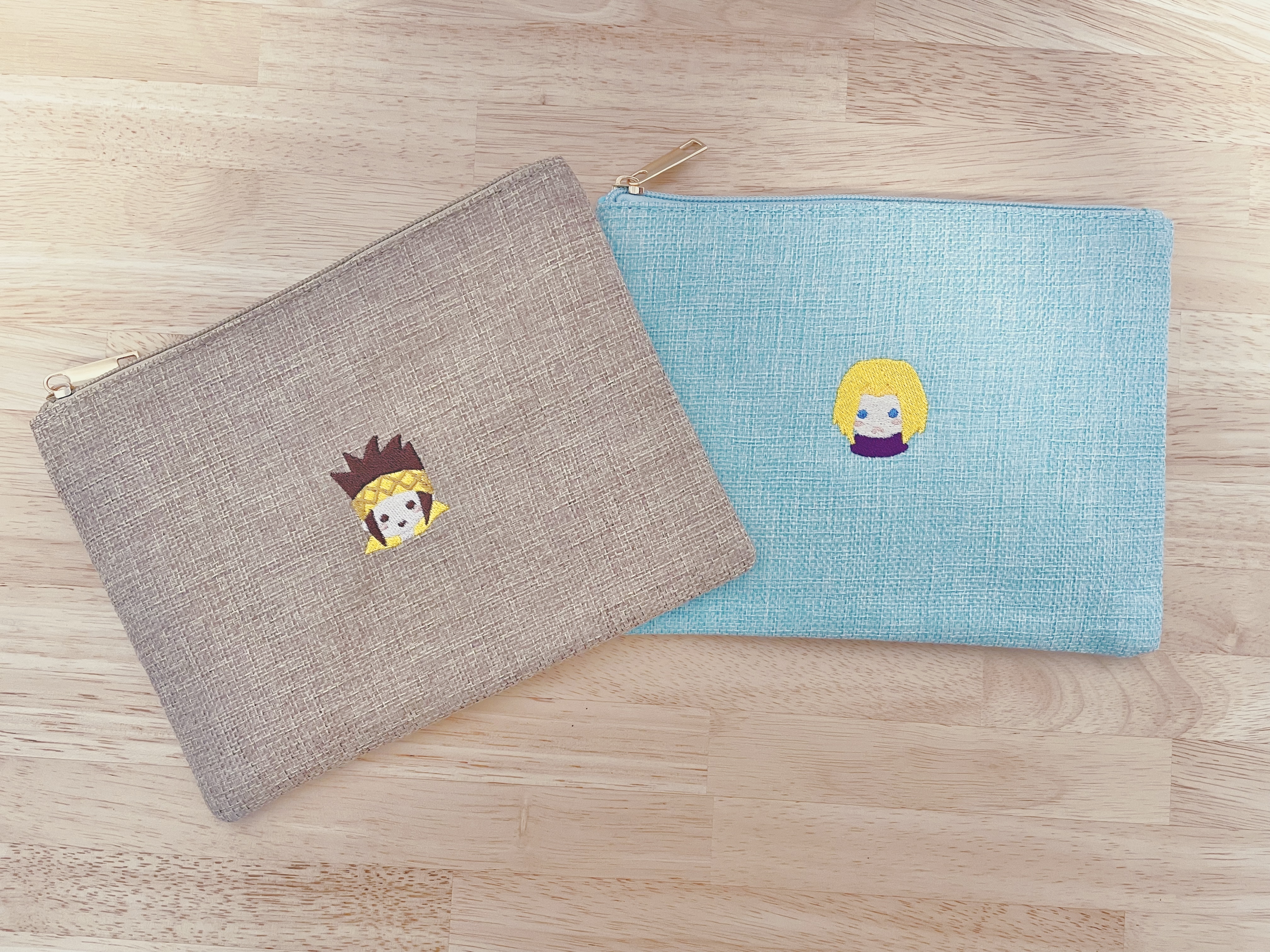 2025/02/26 日記,VB 発注してたフリレオポーチが来ました!リネン生地が上品でとってもいい…!!バンダナの細かい装飾や耳もちゃんと刺繍で再現されててびっくりしましたわーい綺麗に作ってくれて嬉しいな